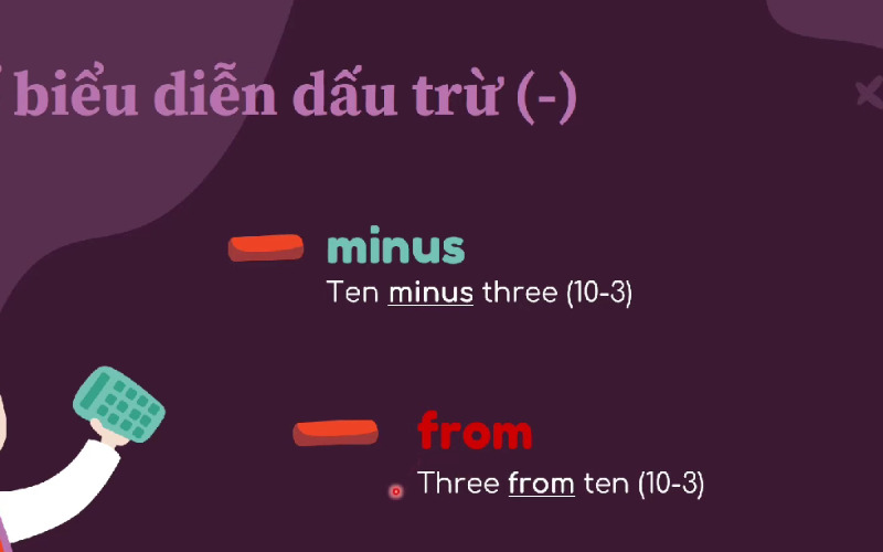 - Dấu phép tính trừ: minus