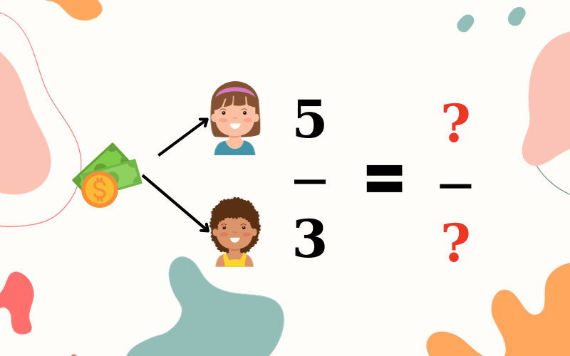 Giả sử bạn có một số tiền là 200.000 đồng và bạn muốn chia sẻ số tiền này cho hai người: Mai và Phong theo tỷ lệ 5:3. Để thực hiện, bạn cần tìm giá trị của mỗi phần.