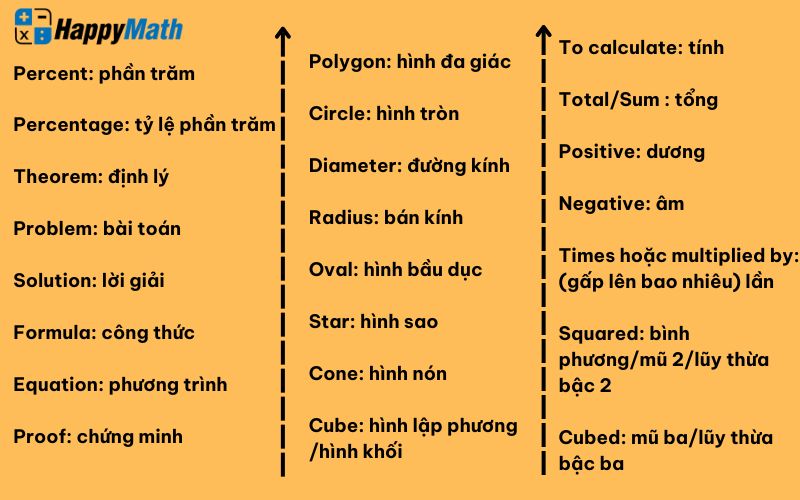 Từ vựng là nền tảng vững chắc giúp học sinh học toán ở nhiều level. Khi học sinh hiểu rõ ý nghĩa từng từ, có thể dễ dàng áp dụng vào để giải quyết các vấn đề toán học. Dưới đây là danh sách từ vựng cần nắm chắc khi học chương trình toán Cambridge lớp 7: