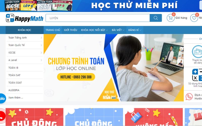 Happymath là nền tảng học toán tiếng anh trực tuyến, chất lượng và uy tín hàng đầu. Tại đây đem đến nhiều khóa học toán quốc tế, dành cho mọi học sinh ở các cấp độ khác nhau.