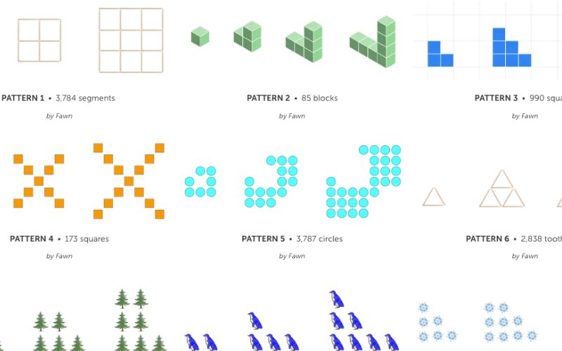 Visual Patterns là một trang web cung cấp các bài học và hoạt động toán học cơ bản ở nhiều cấp độ bằng hình ảnh. Các bài học được trình bày một cách trực quan và sinh động, giúp học sinh dễ dàng tiếp thu.