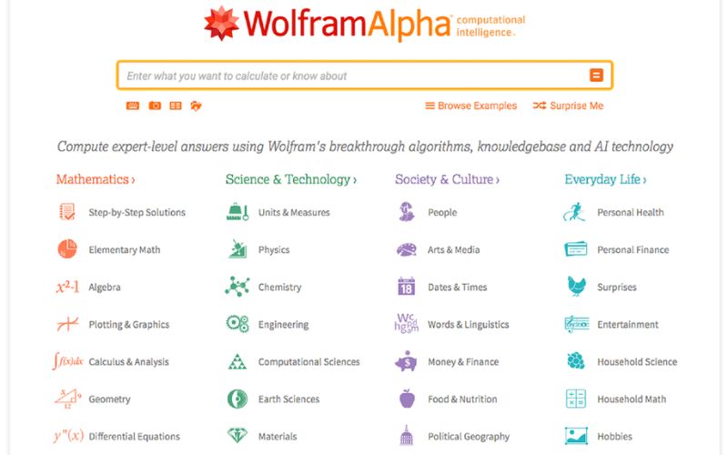 WolframAlpha là một công cụ tìm kiếm toán học có thể giải các câu hỏi toán học, tính toán các biểu thức. WolframAlpha còn có thể tạo đồ thị đẹp mắt của các hàm toán học.