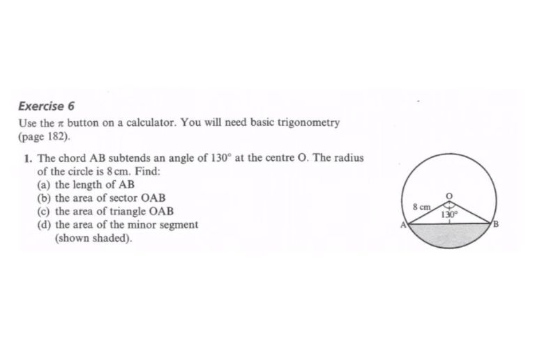 Cũng như trong bài tập ví dụ trên, yêu cầu (d) là về tính toán area of the minor segment - diện tích phần đổ bóng trong hình tròn.