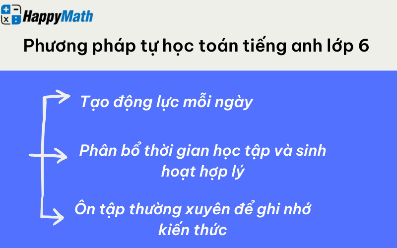 Tự học toán tiếng Anh lớp 6 là một cách học mới mẻ đối với nhiều học sinh. Tuy nhiên, nếu có động lực và phương pháp học tập hiệu quả, việc tự học toán tiếng Anh lớp 6 sẽ trở nên dễ dàng hơn bao giờ hết. Nếu các bậc phụ huynh muốn con em mình nâng cao tư duy toán học và khả năng ngôn ngữ, hãy đăng kí ngay khóa học toán tiếng Anh lớp 6 trực tuyến tại Happymath.