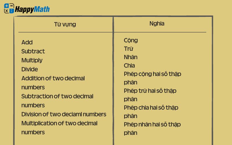 Khám phá danh sách từ vựng quan trọng trong môn toán tiếng anh cho học sinh lớp 5. Học giỏi toán tiếng anh cùng Happymath ngay hôm nay!