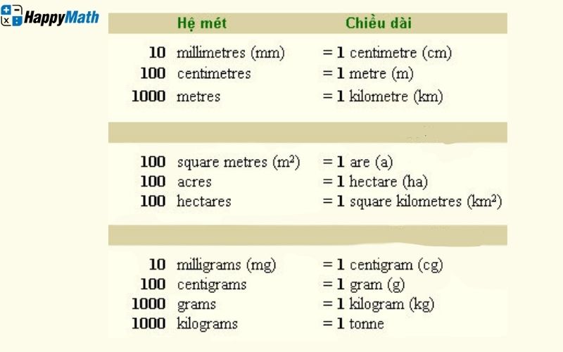 Bên cạnh các phép tính toán học, học sinh cũng phải nắm vững các đơn vị đo lường được sử dụng trong toán tiếng anh lớp 5: